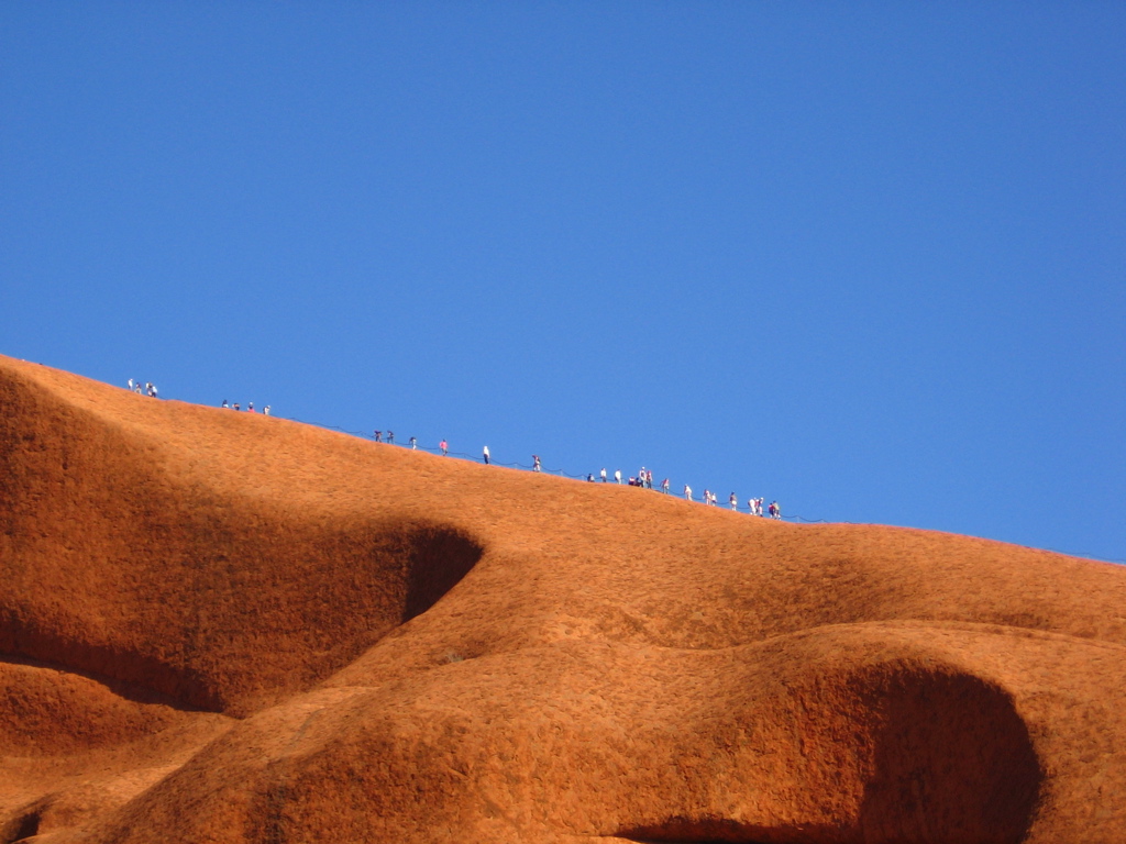 Climbers on Uluru, by rplzzz, via Flickr, CC BY-SA 2.0By the time I visited again, a few years later, I’d had time to consider why – really why – I didn’t’ feel like climbing Uluru.